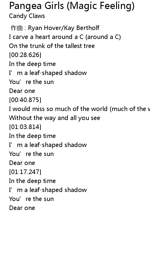 | [00:00.000] | zuo qu : Ryan Hover Kay Bertholf |