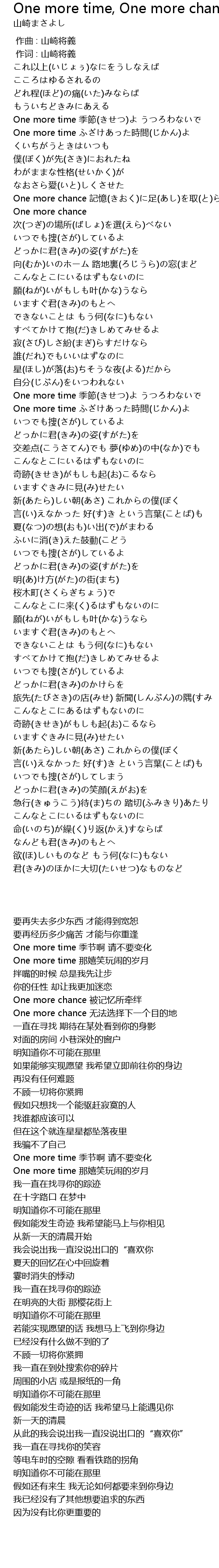 | [01:00.300] | One more chance ji yi zu qu |