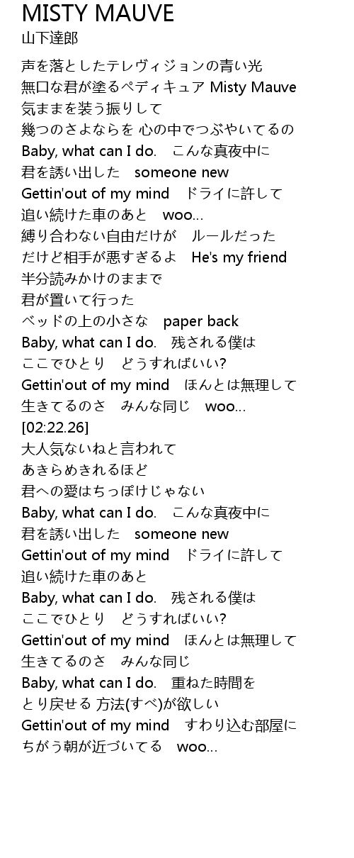 | [02:02.34] | Baby, what can I do. 残される僕は |