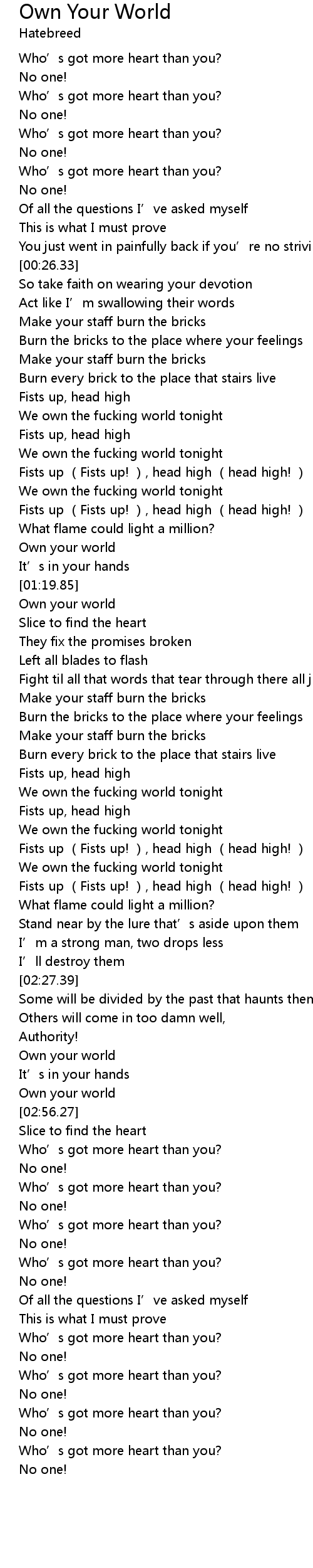 | [02:10.07] | Fists up Fists up! , head high head high! |