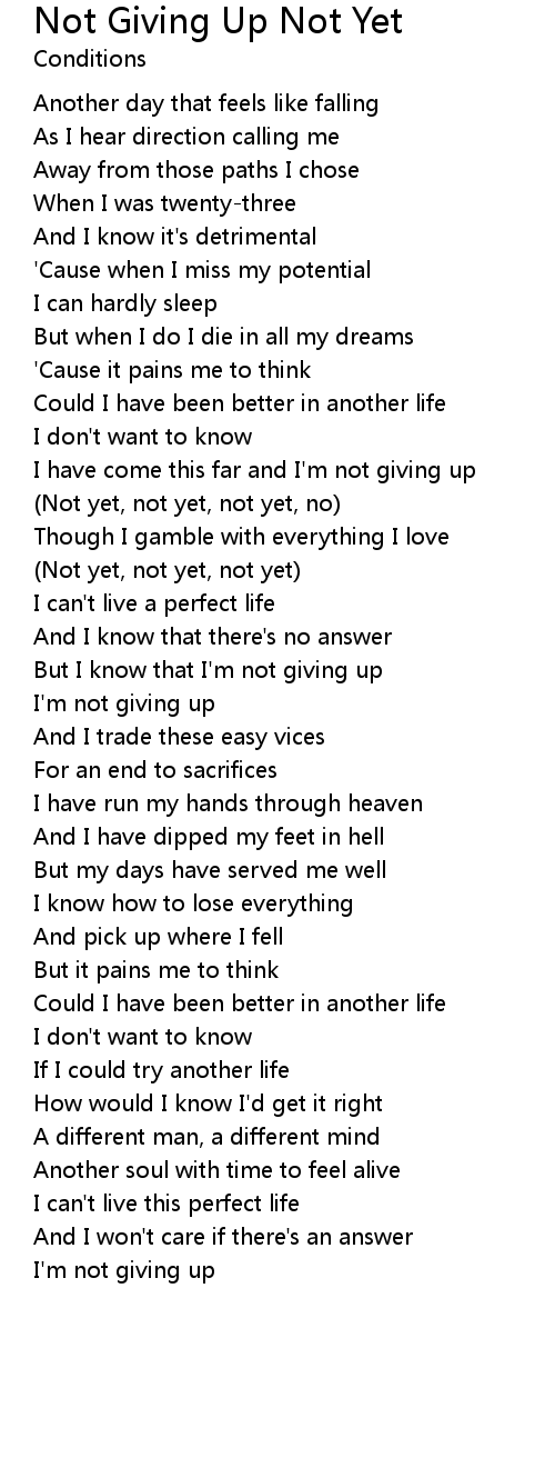 But I know that I'm not giving up |