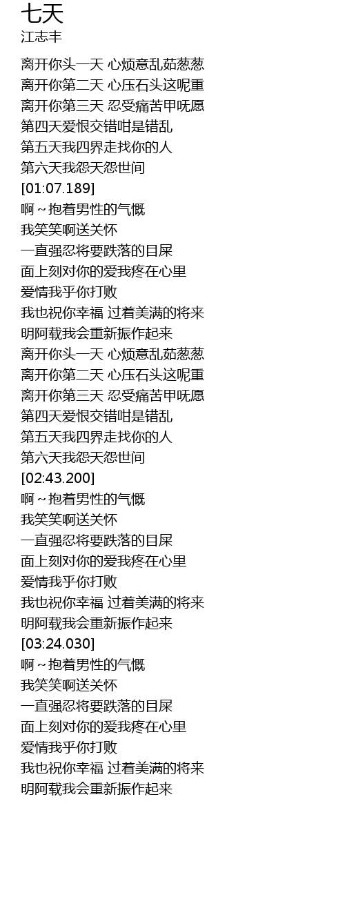 | [00:41.139] | 离开你第三天 忍受痛苦甲呒愿 |