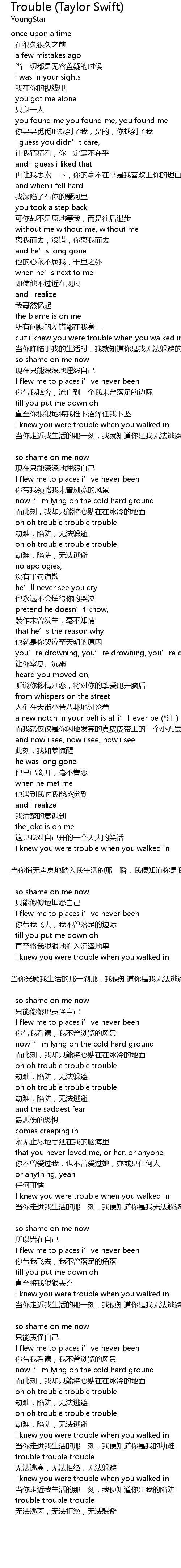 | cuz i knew you were trouble when you walked in | |