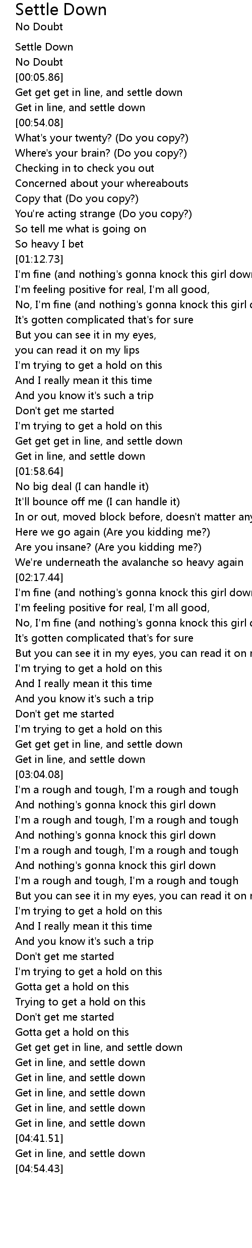 [01:22.53] No, I'm fine (and nothing's gonna knock this girl down)