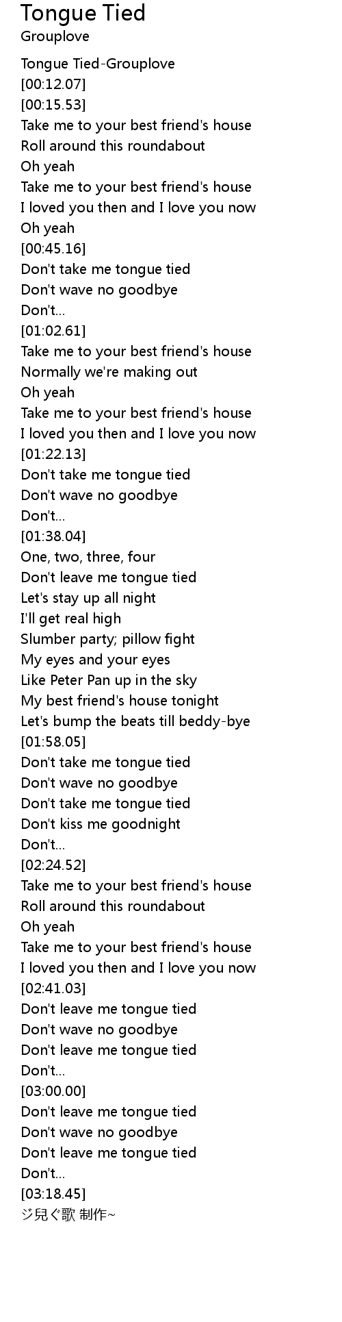 | [00:02.53] | Tongue TiedGrouplove |