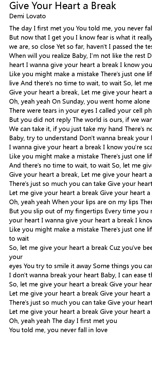 Give your heart a break, Let me give your heart a break Give your heart a break |