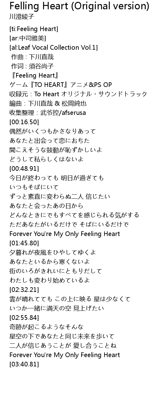 | [00:00.00] | 『Feeling Heart』 |
