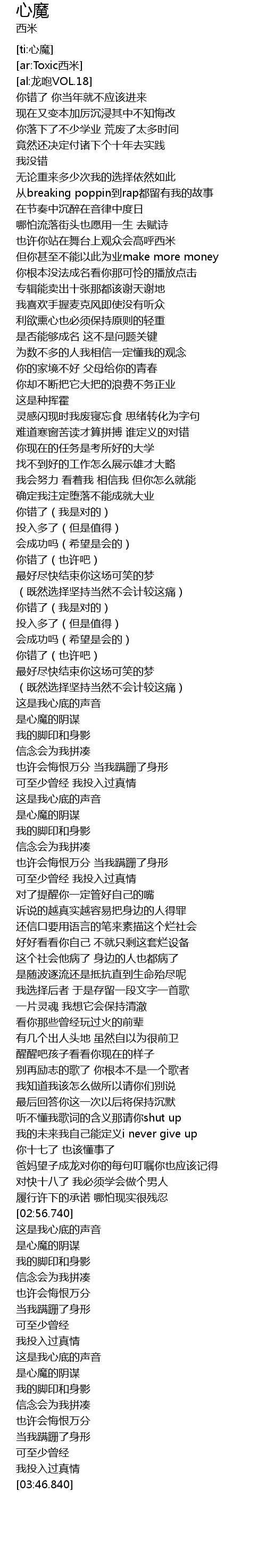 | [ti:心魔] | |