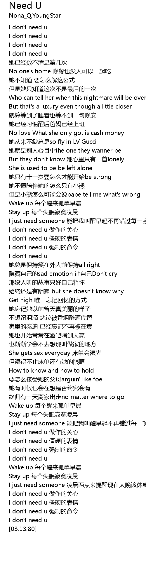 | [03:01.69] | I don't need u 僵硬的表情 |