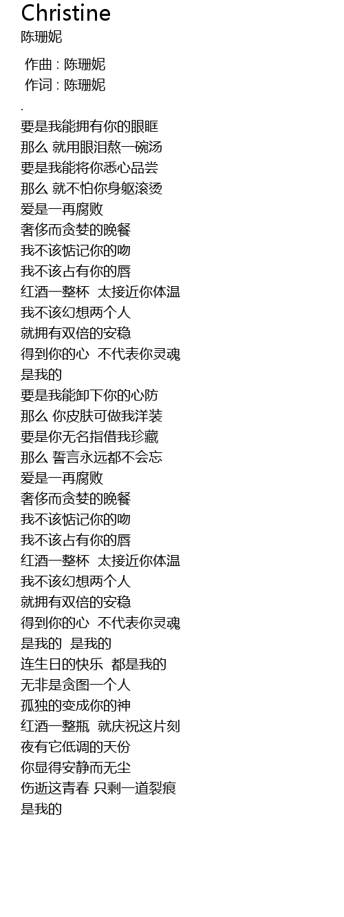 | [00:00.00] | 作曲 : 陈珊妮 |