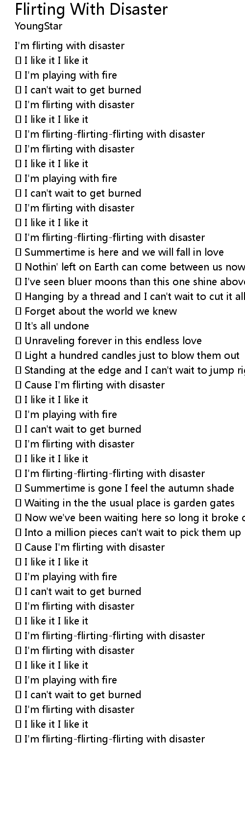 | ♪ I'm flirting-flirting-flirting with disaster |