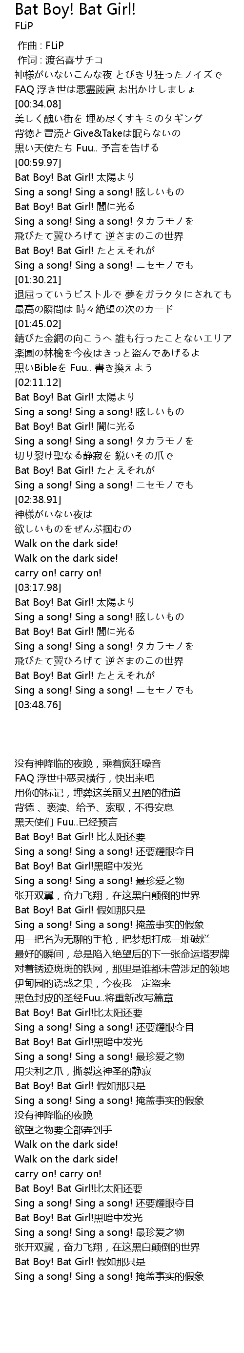 | [02:18.15] | Bat Boy! Bat Girl! 闇に光る |
