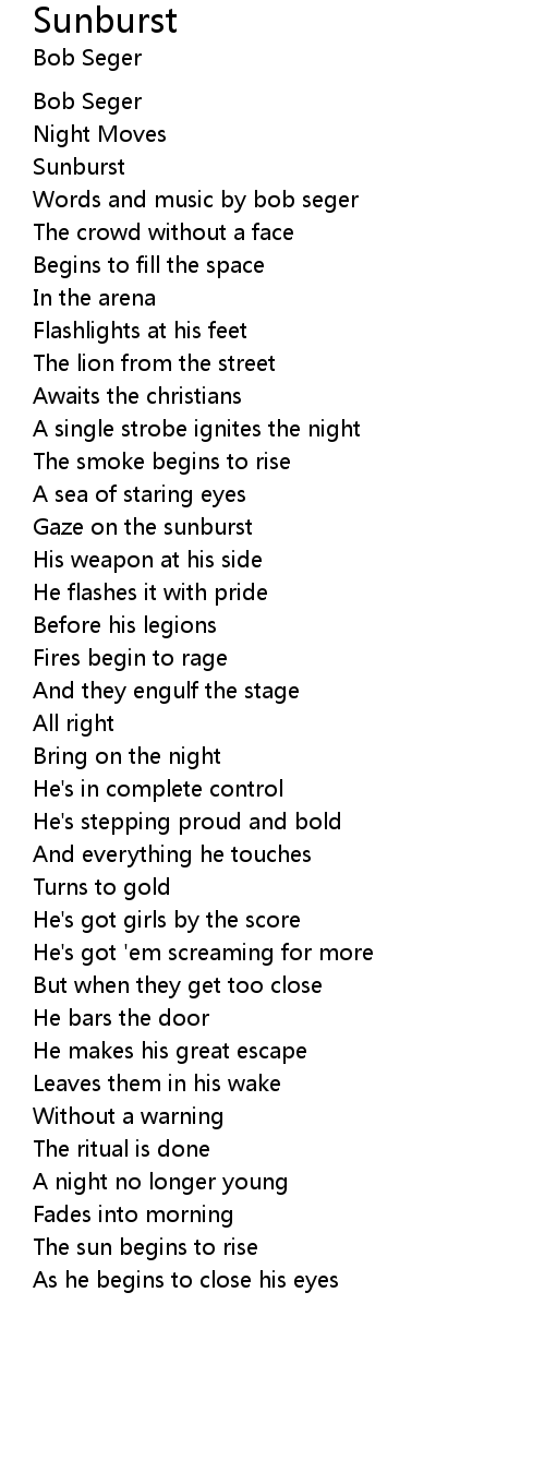 Words and music by bob seger |