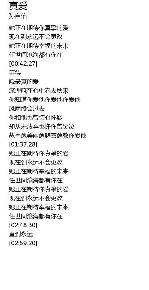 | [01:41.73] | 她正在期待你真挚的爱 |