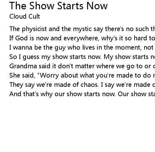 | Song | The Show Starts Now |
