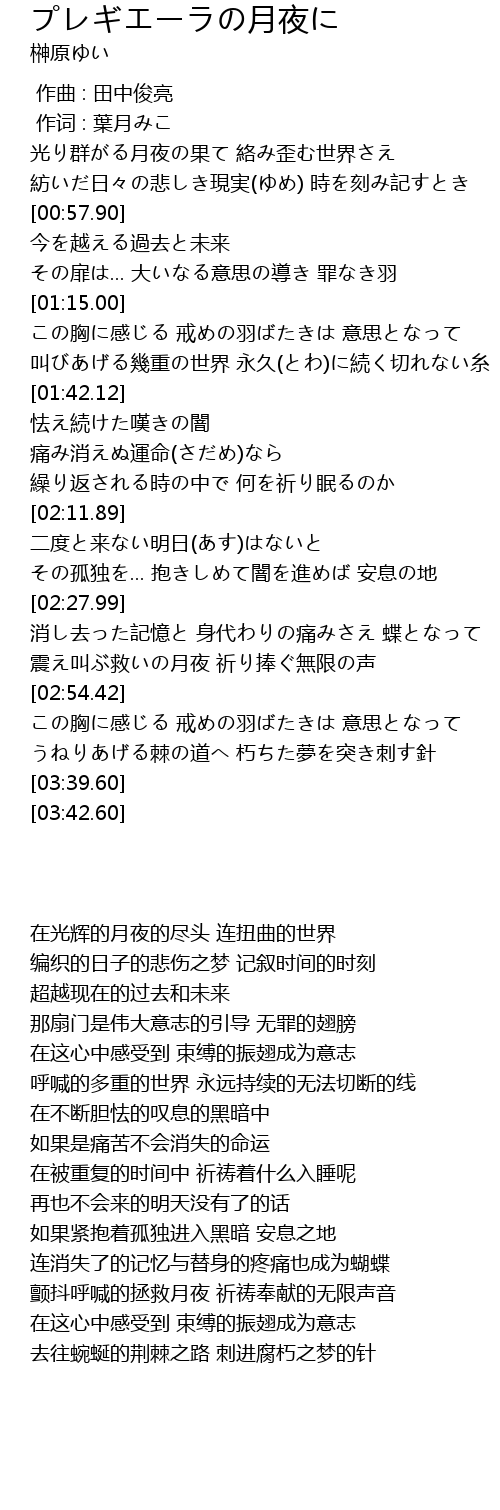 | [02:42.23] | 震え叫ぶ救いの月夜 祈り捧ぐ無限の声 |