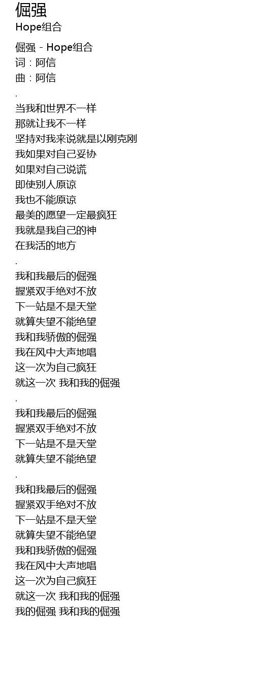 | [00:00.70] | 倔强 - Hope组合 |