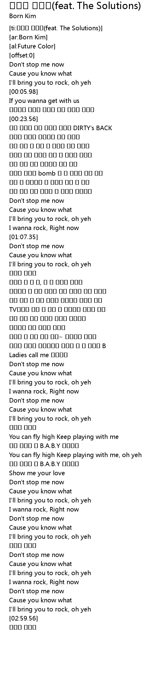 | [02:23.78] | 우린 빛나지 막 B.A.B.Y 멈추지마 |