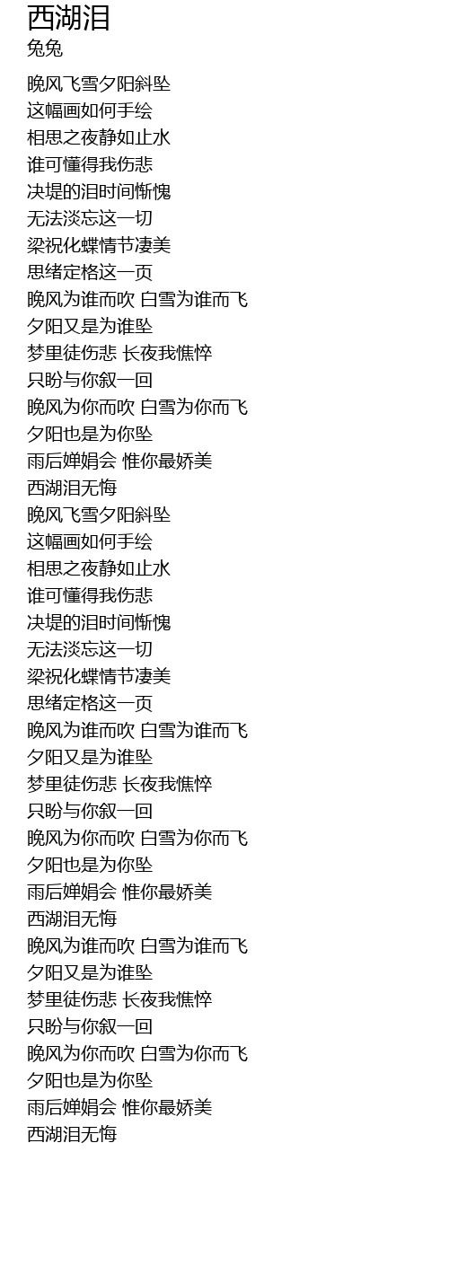 | [01:41.900] | 西湖泪无悔 |