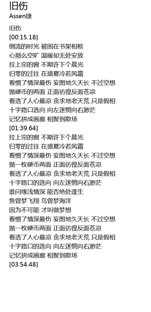 | [00:00.00] | 旧伤 |