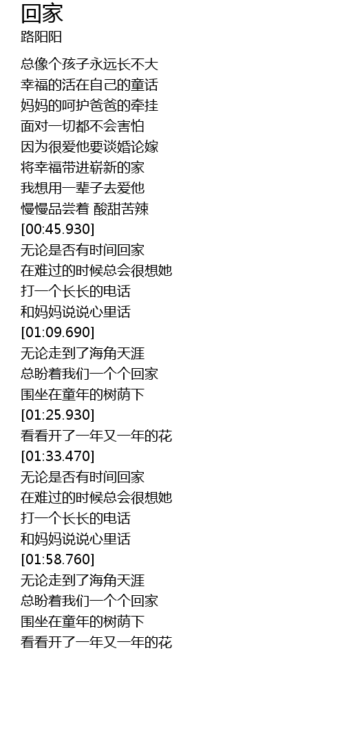 | [02:04.800] | zǒng pàn zhe wǒ men yí gè gè huí jiā |