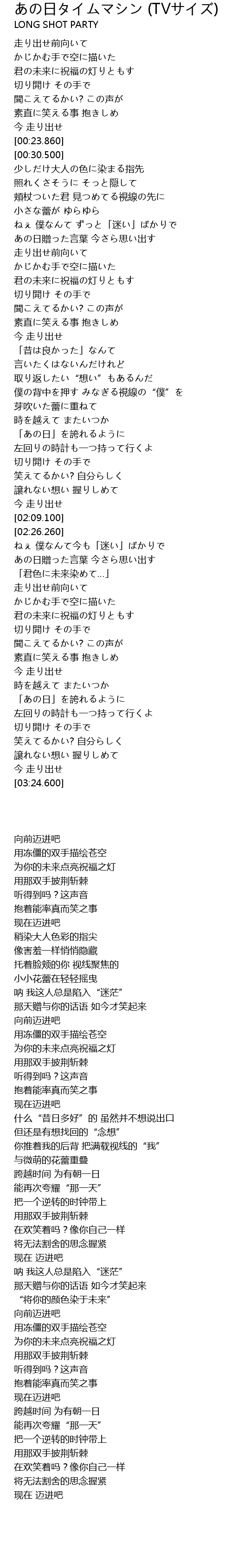 | [02:04.0] | 今 走り出せ |