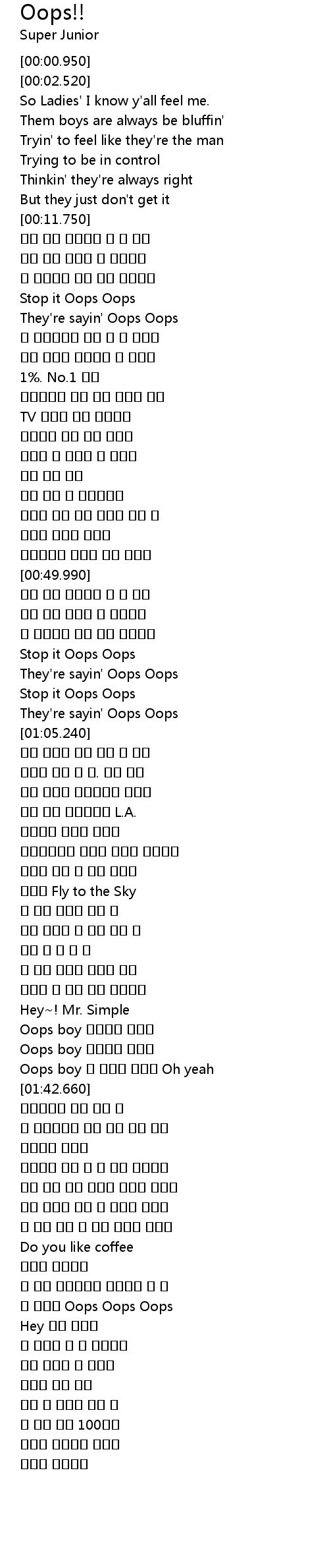 | [01:37.350] | Oops boy 이 남자들 허풍에 Oh yeah |