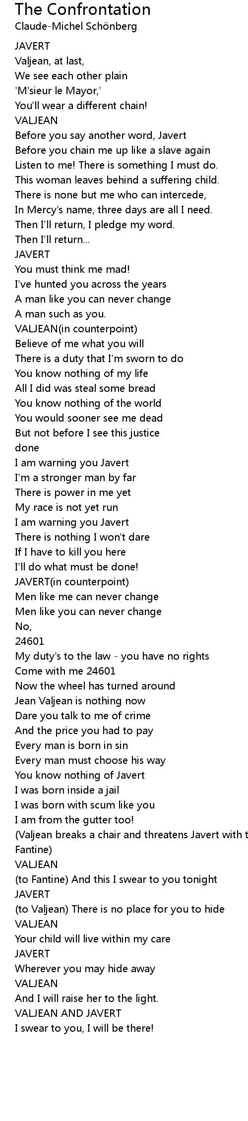 (to Valjean) There is no place for you to hide |