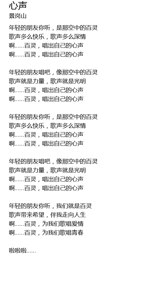 | 年轻的朋友唱吧,像那空中的百灵 | |