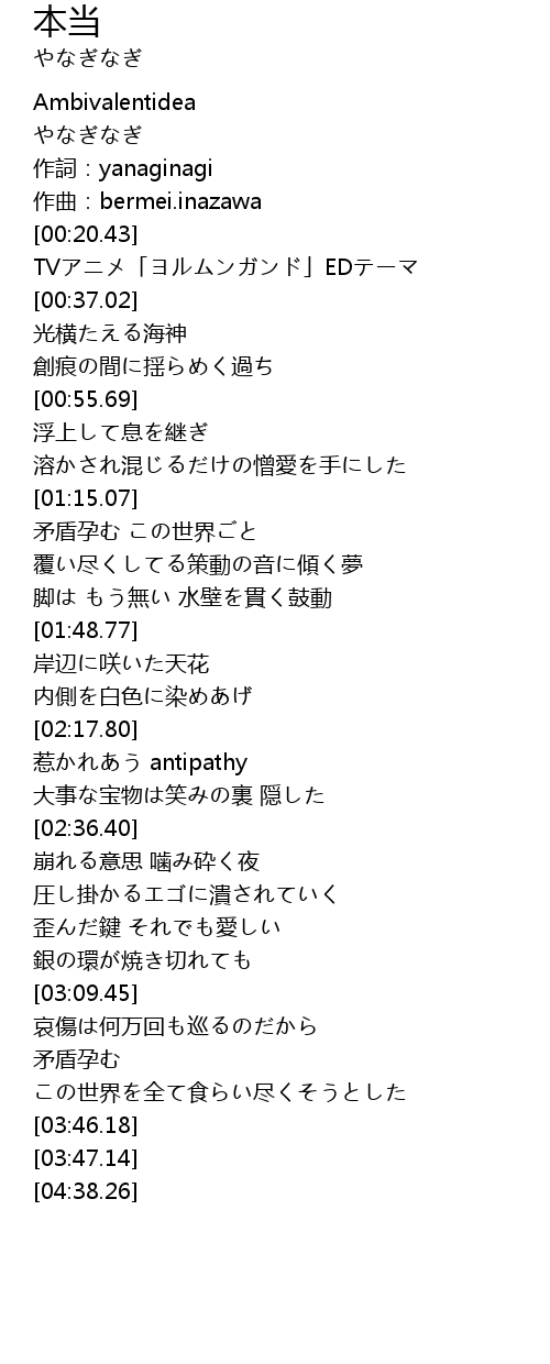 | [00:04.78] | やなぎなぎ |