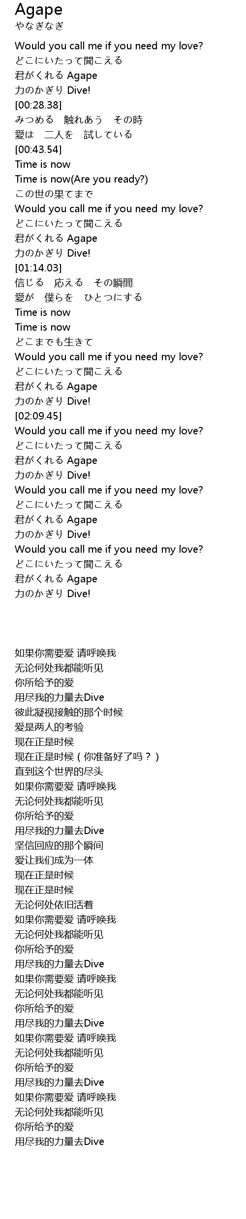 | [01:33.54] | 愛が 僕らを ひとつにする |