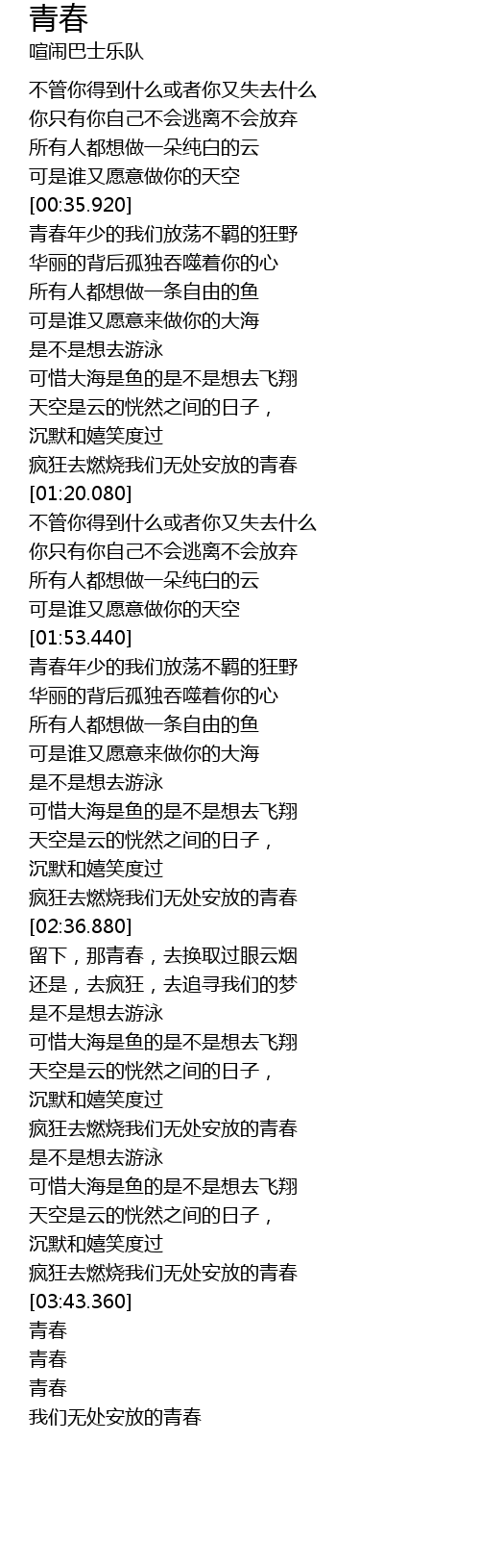 | [03:37.840] | 疯狂去燃烧我们无处安放的青春 |