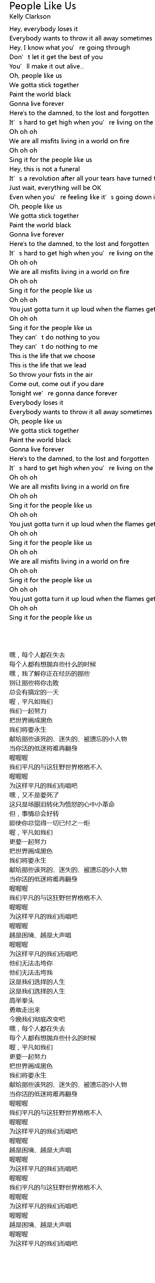 | [02:14.460] | Sing it for the people like us |