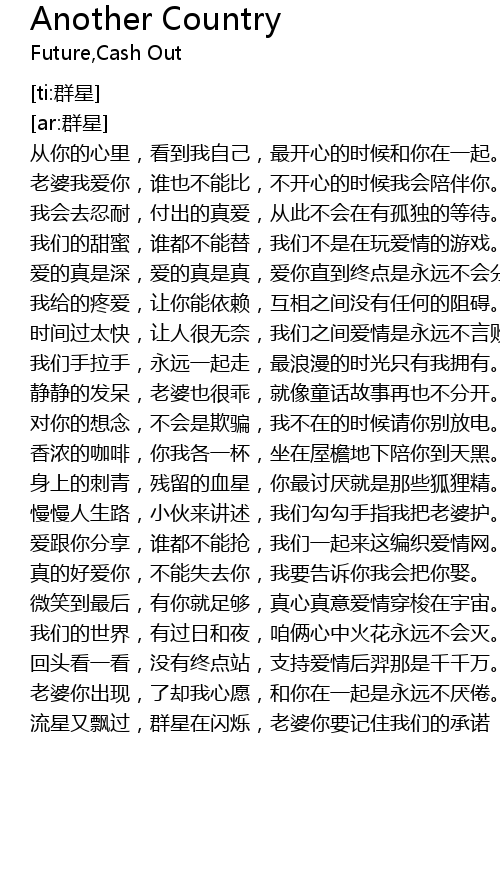 | [02:45.554] | 流星又飘过,群星在闪烁,老婆你要记住我们的承诺 |