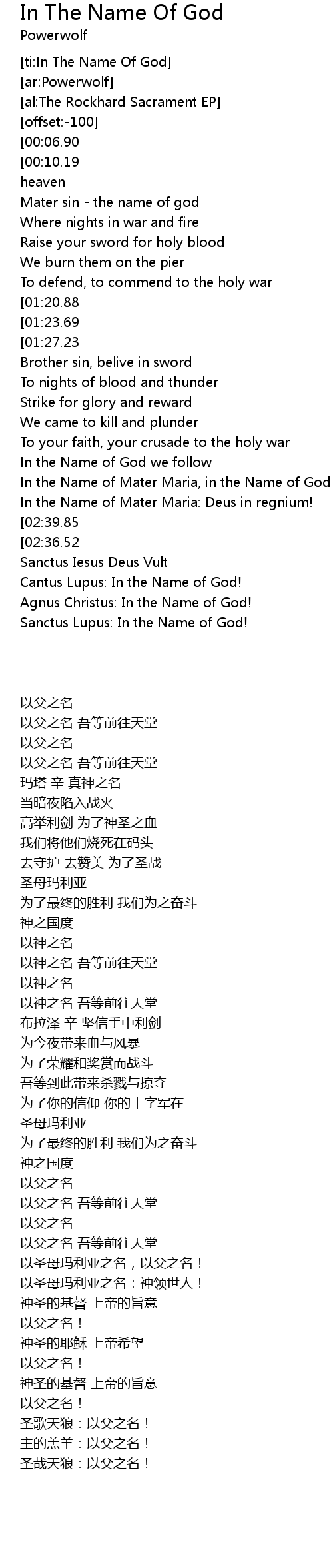 [ti:In The Name Of God] |
