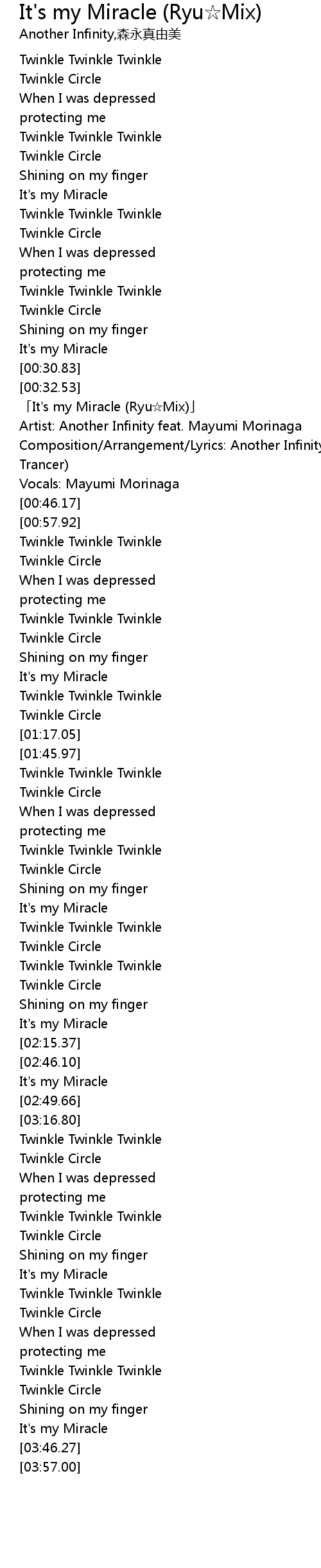 | [00:32.54] | 「It's my Miracle (Ryu☆Mix)」 |