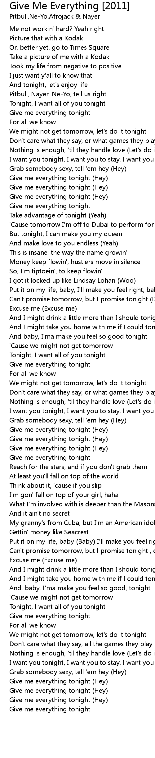 Give me everything tonight |