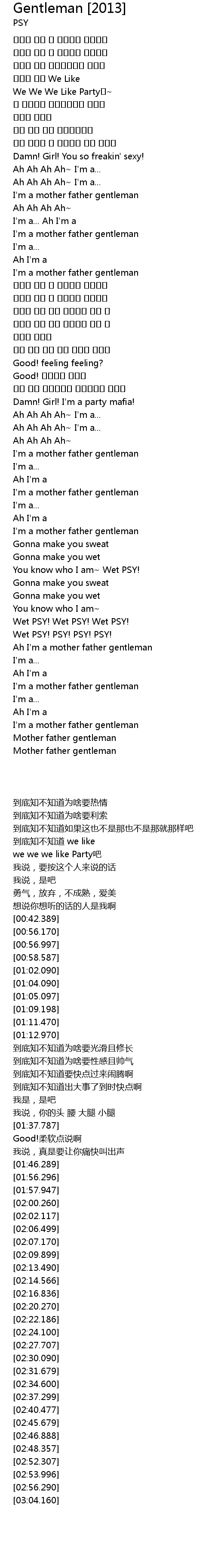| [02:24.100] | You know who I am~ Wet PSY! |