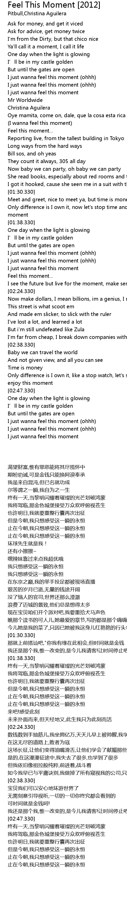 | [03:00.530] | I just wanna feel this moment ohhh |