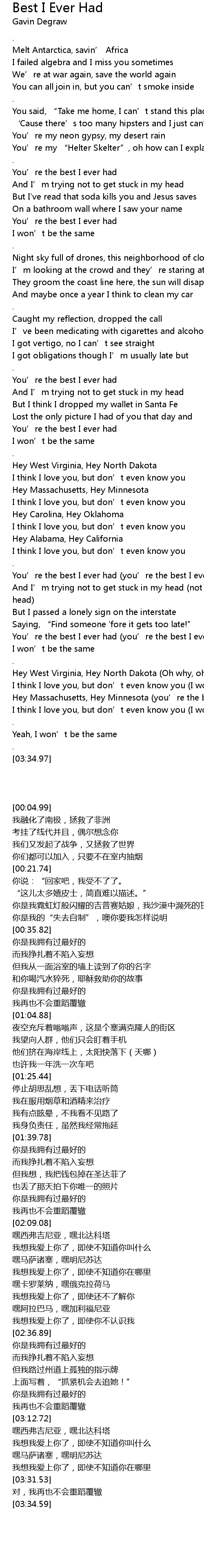 | [03:20.34] | Hey Massachusetts, Hey Minnesota you' re the best I ever had |