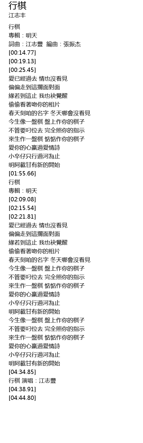 | [04:35.41] | 行棋 演唱:江志豐 |