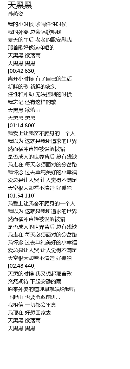 | [03:23.560] | tiān hēi hēi yù luò yǔ |