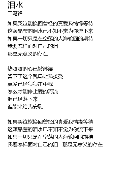 | 这颗晶莹的泪水已不知不觉为你流下来 | |