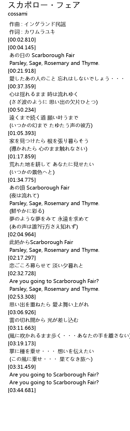 | [02:05.197] | 此処からScarborough Fair |