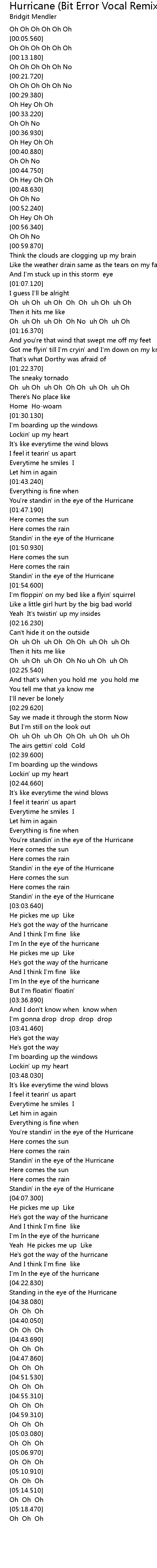 You're standin' in the eye of the Hurricane |