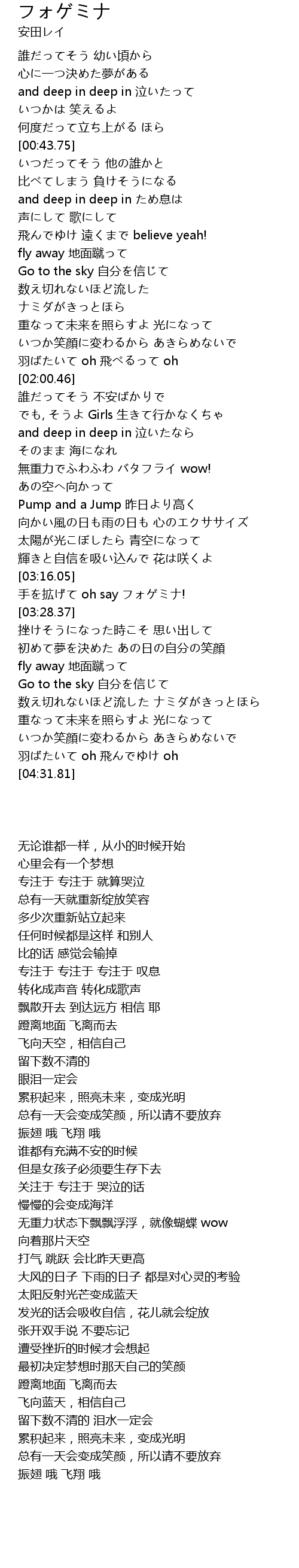 | [03:18.42] | 手を拡げて oh say フォゲミナ! |