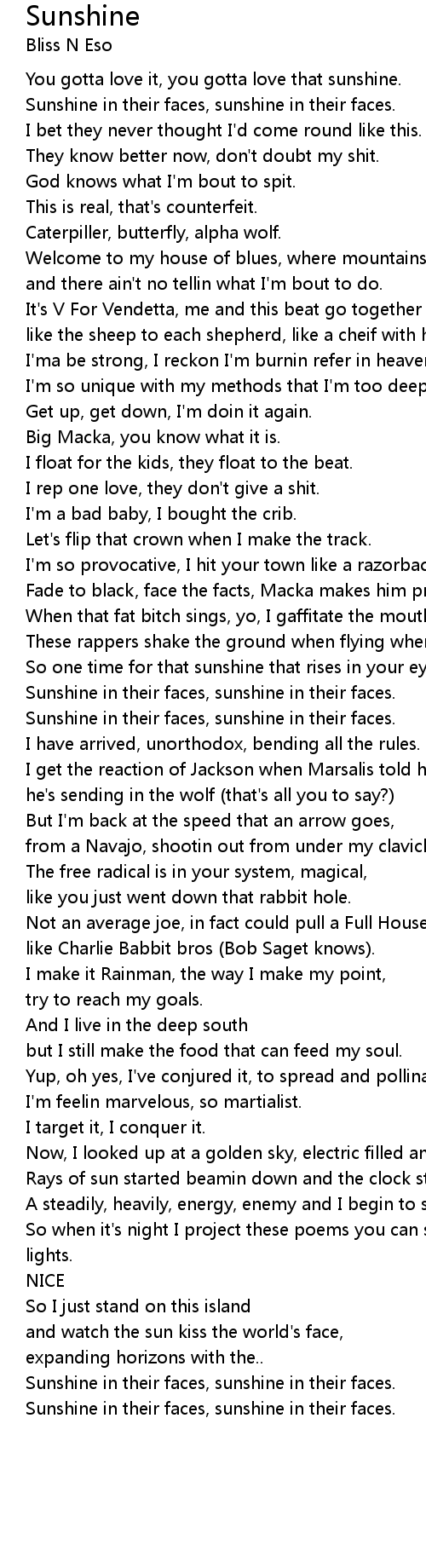 So one time for that sunshine that rises in your eyelids, priceless. |
