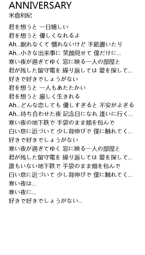 | Ah...待ち合わせた夜 記念日になれ 逢いに行く... | |