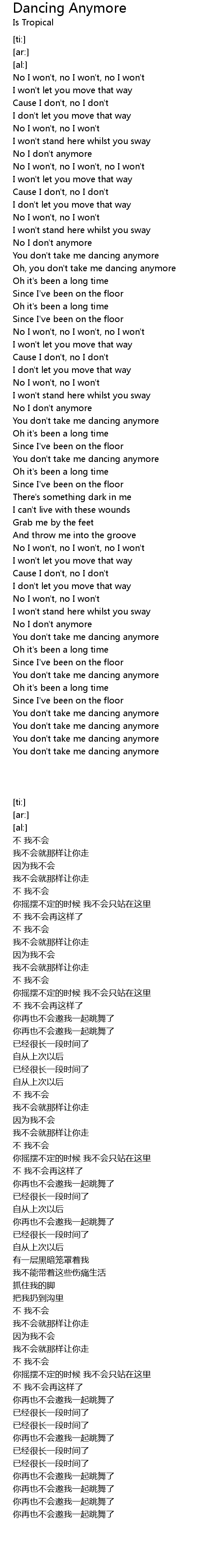 No I won't, no I won't |