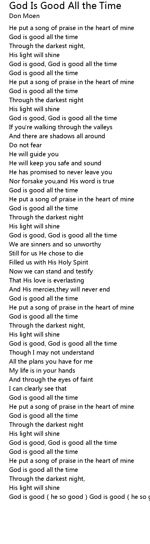 | [00:58.20] | God is good all the time |